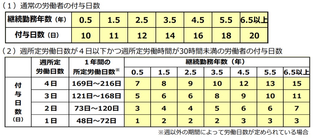続いて有給休暇の付与日数です。